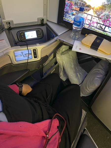 Ik had het voorrecht om onlangs met Air Canada Business Class te vliegen en ik kan je verzekeren dat het een enorm fijne manier is om tijdens een lange vlucht zoveel ruimte te hebben. Vooral het feit je op een nachtvlucht vrijwel helemaal plat kunt en liggend slapen. Je voorzien wordt van een echt kussen en een dekbed.