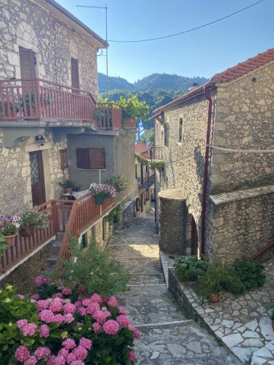 Het heeft de avond ervoor geregend en het is lekker afgekoeld, beter wandelweer dus. We starten wederom om half 9, maar dit keer vanuit Dimitsana en lopen de route naar beneden richting het klooster. Een wandeling van 2.5 uur. Vanaf deze kant is het in ieder geval veel minder stijl en er zijn stukken die langer vlak lopen. Er staat een lekker windje, wat het wandelen makkelijker maakt en de hitte beter te verteren. Ook nu is het af en toe klimmen en klauteren. We gaan een stukje door een beekje, je krijgt net geen natte voeten als je goed kijkt waar je stapt. Deze kant heeft ook stukken met hele smalle paadjes en enorme afgronden. Alweer een uitdaging met mijn hoogtevrees. Het is zeker een aanrader om deze route geheel of gedeeltelijk te doen als je hier bent, want hij is prachtig. Daarnaast zijn de dorpjes met hun vele winkeltjes en restaurantjes echt heel erg leuk.