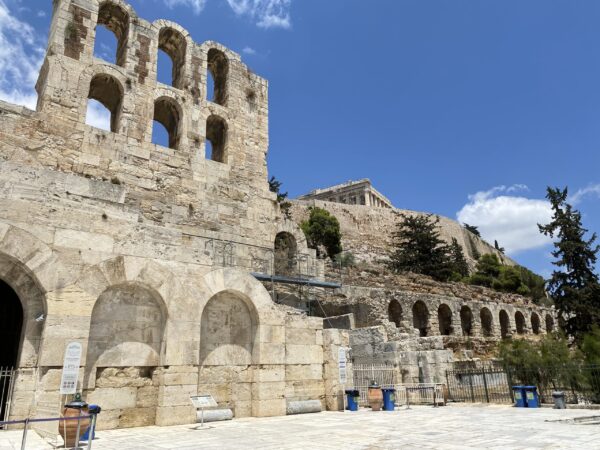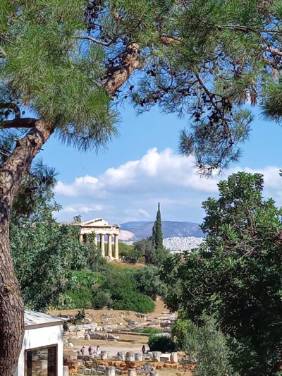Wat doe je als je maar één dag in Athene bent? Ons briljante plan was om Athene te bekijken via een speurtocht. We dachten leuk een beetje actief bezig zijn in de stad en ook nog mooie dingen zien. Helaas was dat een illusie. Vanaf ons hotel was het een half uur wandelen naar het beginpunt. Wel een hele mooie wandeling, want we zagen al veel mooie oudheden, zoals de Akropolis, Ancient Agora, Apolstoli en een stukje van de wijk Plaka. De eerste twee raadsels voor de speurtocht waren goed te doen, dit leidde ons naar de Botanische tuin, waar we nog zeven vragen kregen. Helaas was de halve tuin afgesloten, waardoor we met onze speurtocht helemaal vastliepen. Na een kort beraad op een van de vele terrasjes besloten we zelf verder te gaan naar de wijk Plaka. Dit is een erg gezellige wijk met veel winkeltjes en terrasjes. Na wat struinen in de winkeltjes besloten we verder te gaan naar de boog van Hadrian en de tempel van Zeus. Rondom de berg waar de Akropolis op staat is een heel wandelgebied gemaakt, waar je rustig kunt lopen zonder het drukke verkeer om je heen. Op sommige stukken langs de route staan allemaal standjes. Rond etenstijd gaan we richting de wijk Psirri/Gazi, net zo’n leuke wijk als Plaka, zonder de winkeltjes maar bezaaid met restaurants en terrassen. Het is hier heel erg gezellig en we eten echt Grieks in restaurant Bandiera. Voor we terug gaan naar ons hotel, doen we nog een drankje op het terras waar we uitzicht op het prachtig verlichte Akropolis hebben.