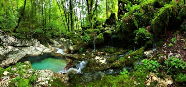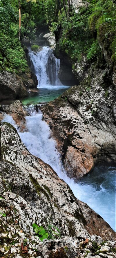 Vervolg de weg richting Lepena voor een km of 6. Parkeer op de parkeerplaats (gratis) en wandel naar de Sunikov Vodni Gaj (een heleboel watervalletjes en poeltjes). De totale wandeling is een klein uurtje. Je loopt eerst naar de brug, ga eroverheen en hou links aan. Vervolgens kan je een rondje lopen en kom je weer bij de brug terug. Dat eerste stukje loop je dus dubbel. Deze wandeling was ik nog niet op een blogje tegengekomen, maar stond in het boekje van ons appartement. Ook prima te doen met kinderen.