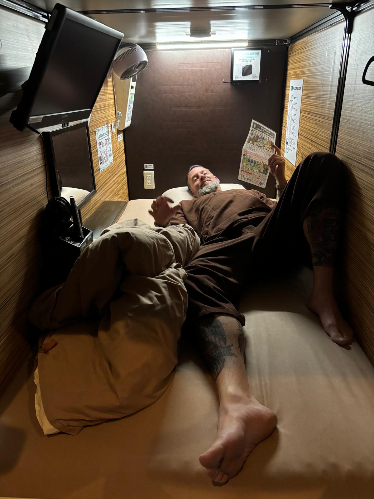 Slapen in een capsule hotel in Japan
