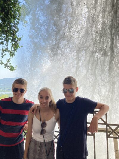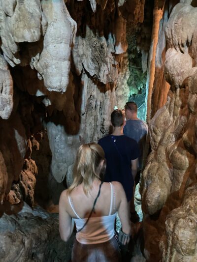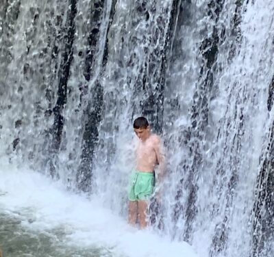 We gaan weer op pad. In één keer naar onze eindbestemming is te ver, dus besluiten we om een nachtje iets leuks te zoeken. We hadden gehoord van de watervallen in Edessa, dus die kant gaan we op. De rit kost drie uur en midden in dit stadje ligt een enorme waterval, maar eigenlijk ligt het stadje er bovenop. Je loopt dus de trappen naar beneden om de waterval te zien en kunt ook nog achter de waterval door lopen. Er komt een enorme golf water uit ondanks de droogte die ook in Griekenland heerst. Voor €1,- kun je ook nog in een kleine druipsteengrot kijken. Na een picknicklunch gaan we verder naar Pozar en daar slapen we. Wat we niet wisten, maar dat vertelde onze gastvrouw, is dat op een klein kwartiertje rijden een warmwaterbron ligt. Het water in deze bron in de bergen is 37 graden, daarnaast ligt een waterval en daarin kun je vervolgens afkoelen. Er zijn kleedruimtes, bankjes en winkeltjes. Toen we er waren was het vreselijk druk, omdat er een festival was ’s avonds, maar dat schijnt niet vaak te gebeuren. Ondanks de drukte was het toch leuk om er even geweest te zijn. Het gebied leent zich ook voor geweldige wandelingen en als je wilt weten waar perziken vandaan komen, er waren velden vol perzikbomen.