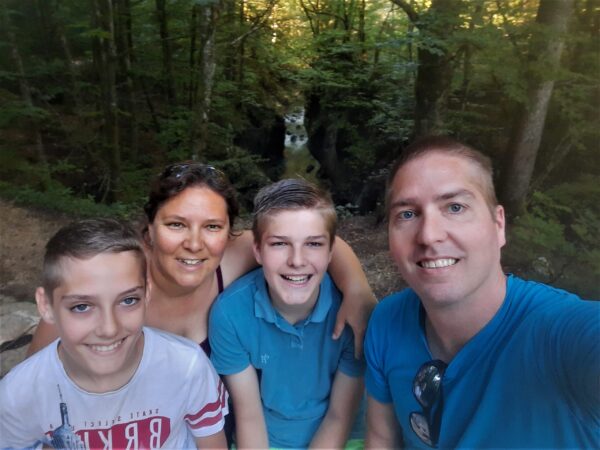 Doordat we de transferbus misten, besloten we naar boven te lopen, in een kleine 50 minuten loop je over de weg door het bos naar de start van de wandeling naar de waterval. Man wat was het hier druk. Vanaf het punt dat je moet betalen, is het een aardige klim naar boven. En wanneer je dan boven bent, kun je niet eens bij de waterval komen. Je moet achter een hek op een smal strookje een foto proberen te nemen. En heel eerlijk, wij hebben al mooiere watervallen gezien hier in Slovenië. Op nr 1 staat bij ons de Virje-waterval, ondanks de regen die we daar hadden. Daarna komt Boka zeker op een goede nr 2.