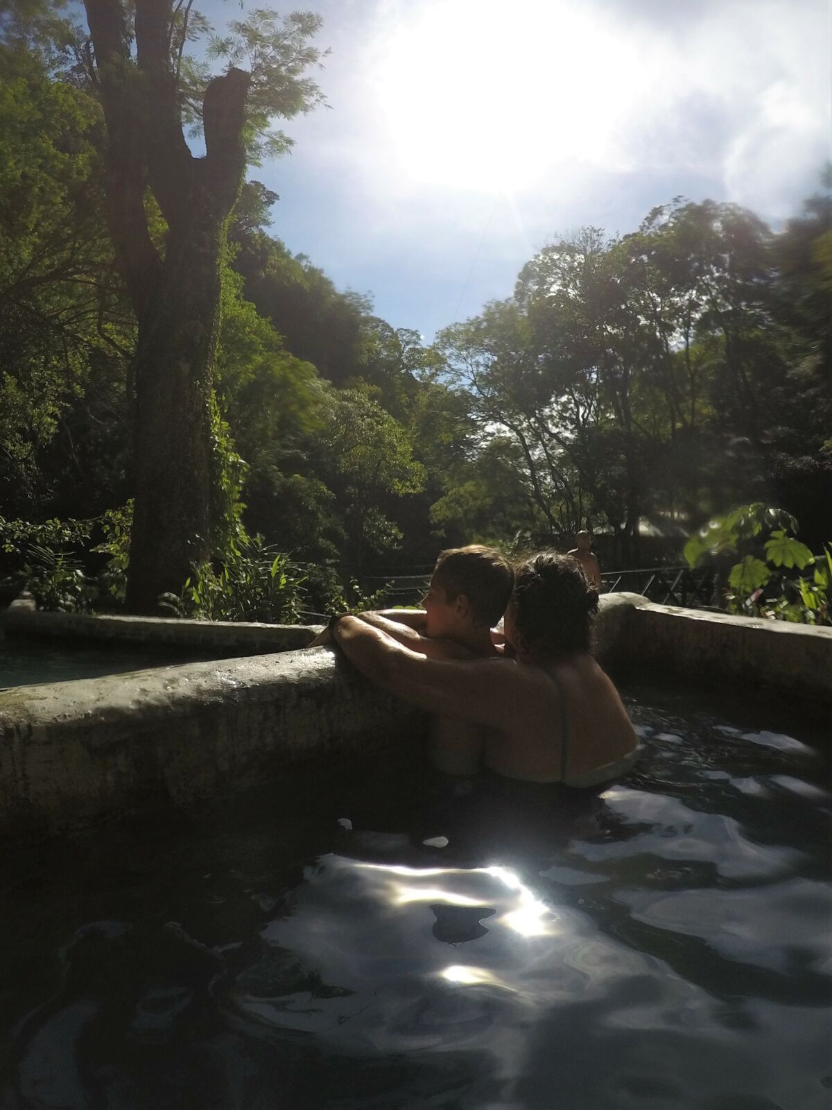 Na de lunch gingen we met een tractor nóg dieper de jungle in. Daar wachtte een mini-spa tussen de bomen: eerst een wandeling naar een verborgen waterval (prachtig!), dan de sauna in, jezelf insmeren met modder en opdrogen in de zon. Even afzien onder de ijskoude douche en dan… de heet waterbaden in. Alles puur natuur, alles buiten, alles ontspanning.