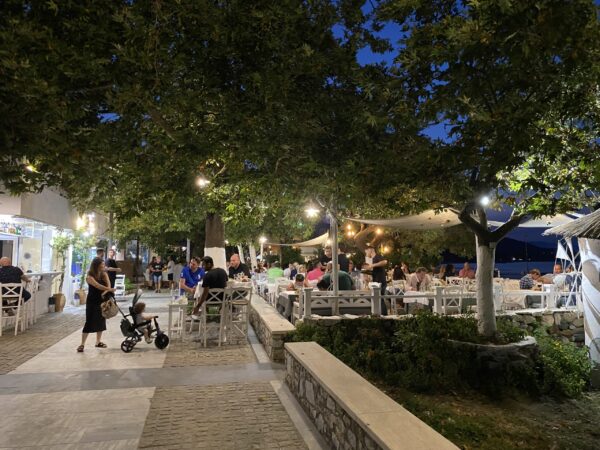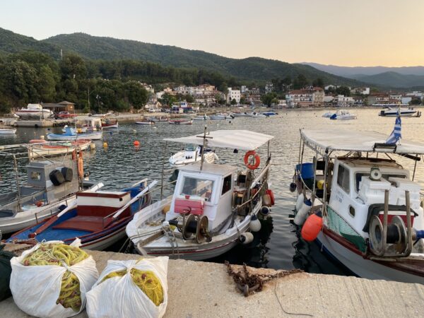De laatste bestemming is Olympiada en dat is twee-en-half uur rijden vanaf Pozar. We vertrekken vroeg, omdat we eerst bij een vriendin gaan lunchen die in Olympiada woont. We blijven hier vier nachten voordat we naar huis vliegen en hebben een heerlijke villa gehuurd met privé zwembad net boven Olympiada. Dit dorp heeft een paar winkels en een heleboel restaurantjes aan het strand. Reserveren is wel noodzakelijk in de zomer, want dan zijn er meer toeristen dan tafeltjes.