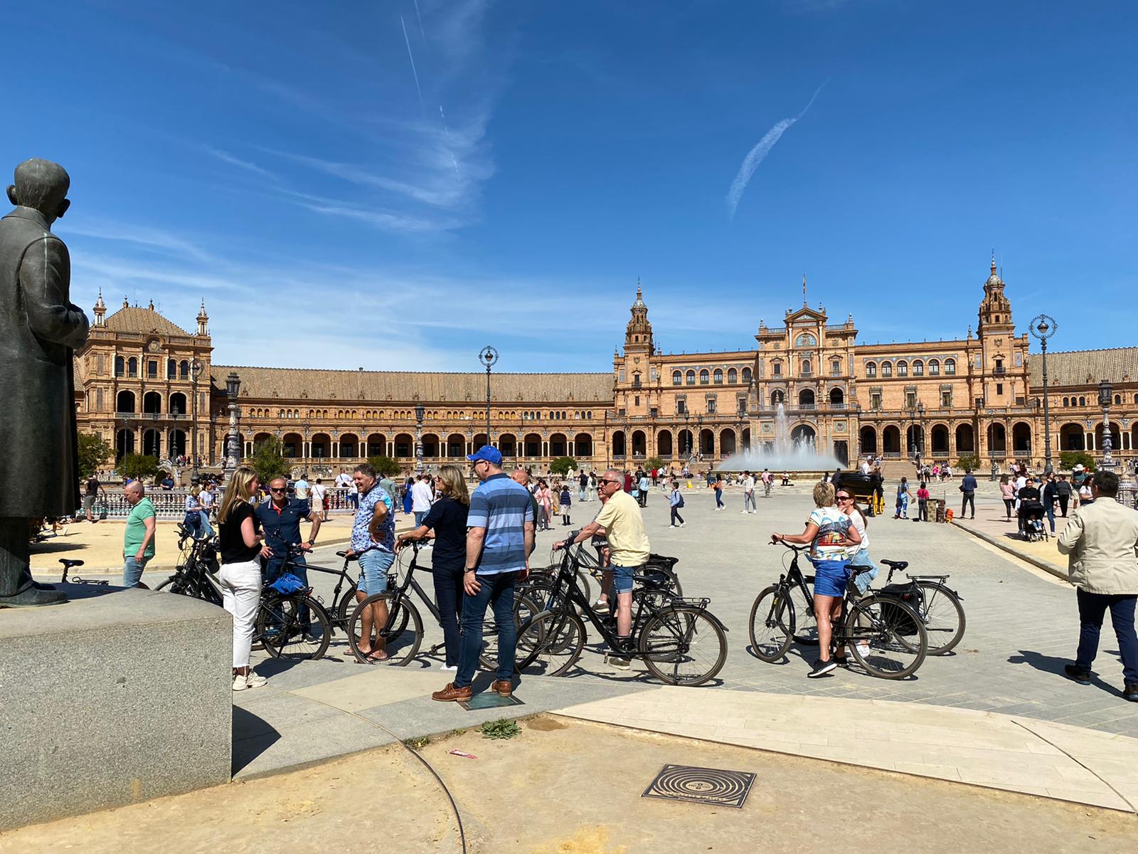 Na het lange tafelen van gisteravond heeft iedereen de ochtend vrij om zelf op verkenning te gaan of uit te slapen. Het middagprogramma begint pas om twee uur. We hebben afgesproken bij de fietsverhuur van Baja Bikes en gaan een tapastour doen. We beginnen met tapas tegenover de fietsverhuur, om daarna op de fiets te stappen en in drie uur tijd langs alle bezienswaardigheden van de stad te fietsen. We sluiten de tour ook weer af met een tapas in het park. Sevilla is prachtig en kleurrijk, een mooie oude stad, ook de wijk Triana is heel erg leuk. Door deze fietstocht wil ik nog een keer terug om op eigen houtje door de stad te dwalen. Overal zie je mensen op terrasjes zitten, ze genieten van het weer, de drank en het lekkere eten. We sluiten deze avond af in restaurant El Traga. Echt het beste restaurant dat we hier gehad hebben. Bediening goed, heel erg goed en lekker eten, en een zeer sfeervol interieur. Een goede afsluiter voor deze paar dagen in Sevilla, want de volgende dag vliegen we alweer terug naar huis.