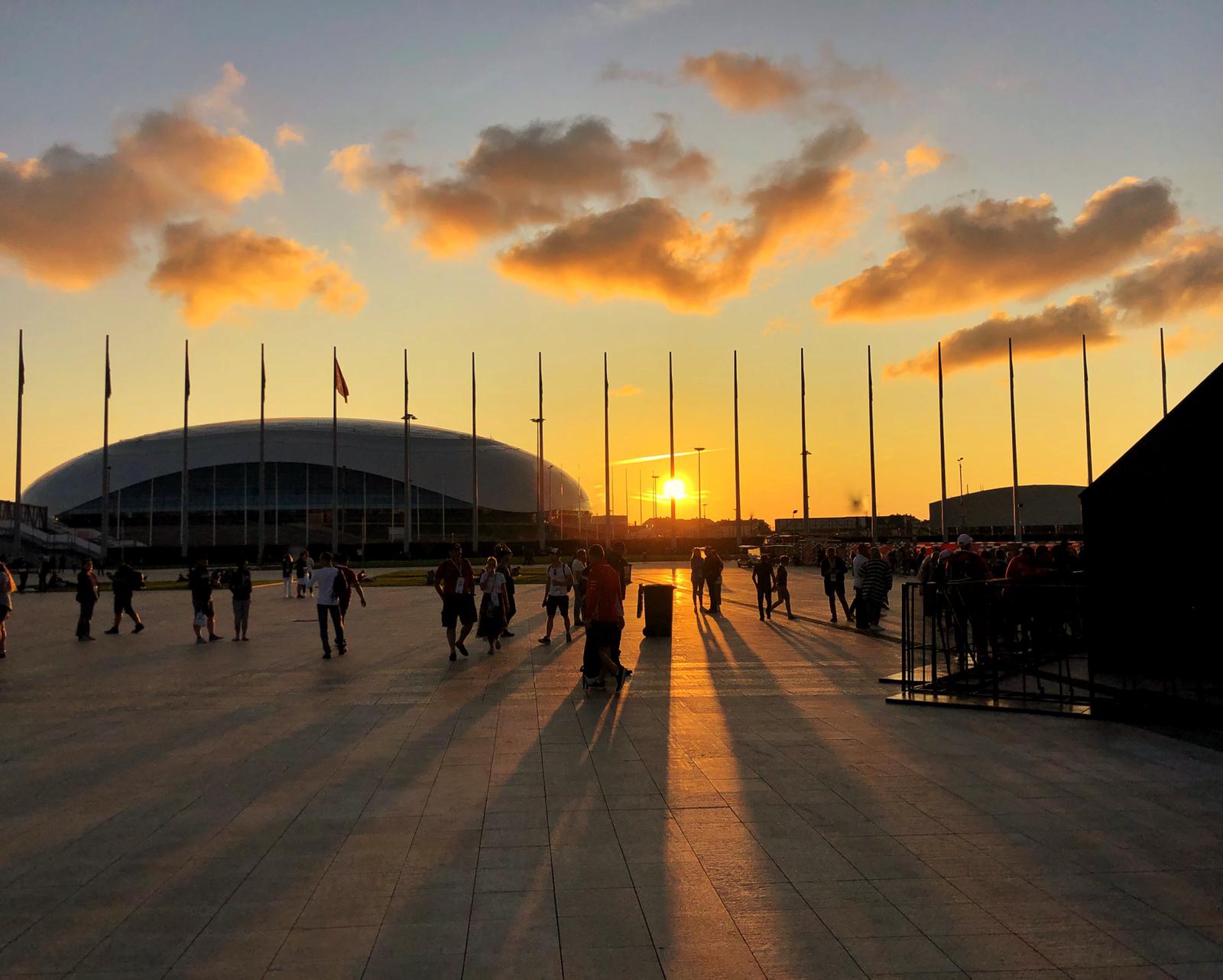 ’s Middags was iedereen vrij om te doen wat hij/zij wilde. Veel wilde graag al naar het Olympisch dorp waar de F1 plaats vindt en dat heb ik voor hen geregeld. Dit ‘dorp’ blijkt een uurtje van Sotsji af te liggen en het is een mega groot en mooi terrein. Zonder kaartje kom je niet binnen en eenmaal binnen ga je net als op de luchthaven door een strenge beveiliging. Na afloop gaan we terug naar de stad en wordt er gegeten en kan iedereen los in het nachtleven. En als je met een stel pizzabakkers op stap bent, moet je natuurlijk pizza eten bij de Russische concurrent Dodo.