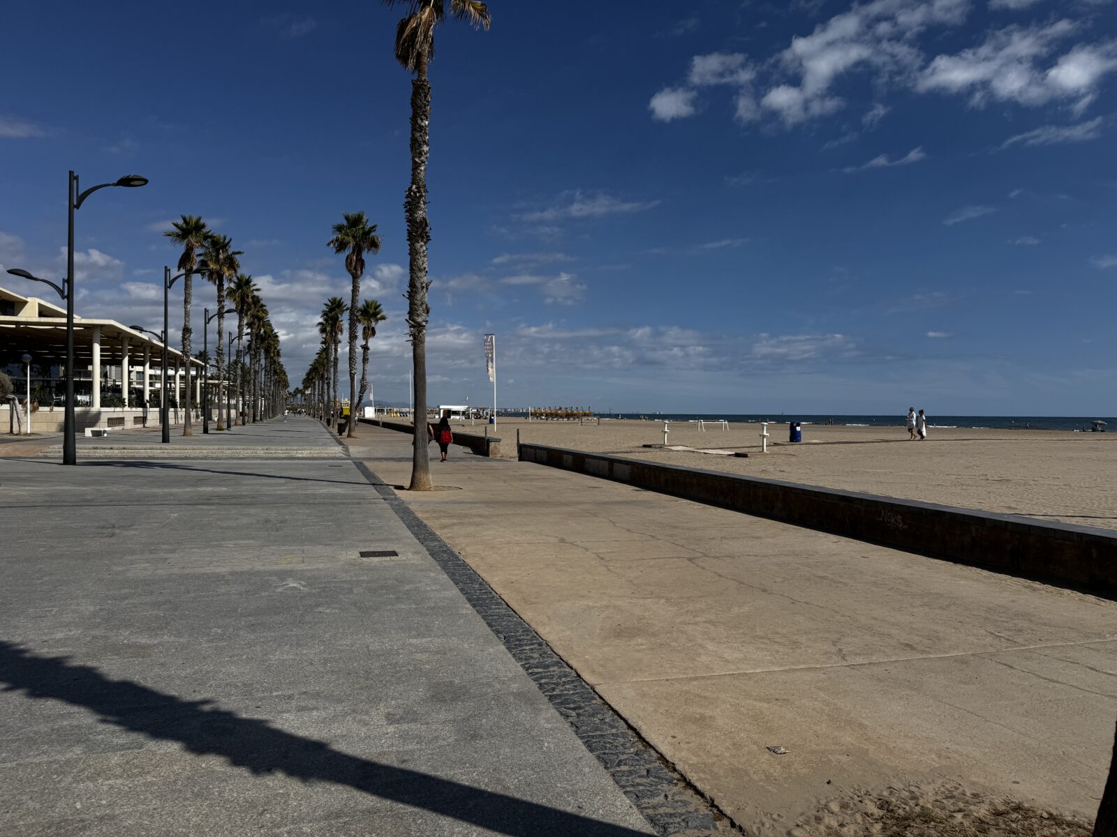In Valencia voelt het strand heel anders. Playa de la Malvarrosa is breder, rustiger en minder toeristisch. De boulevard is ruim en overzichtelijk, de zee oogt zachter en de sfeer is meer ontspannen. Je hebt hier de ruimte om even helemaal tot rust te komen. Na het wandelen door de oude stad of het fietsen door de Turia-tuinen is het heerlijk om hier neer te ploffen, iets te drinken en te genieten van het geluid van de zee.