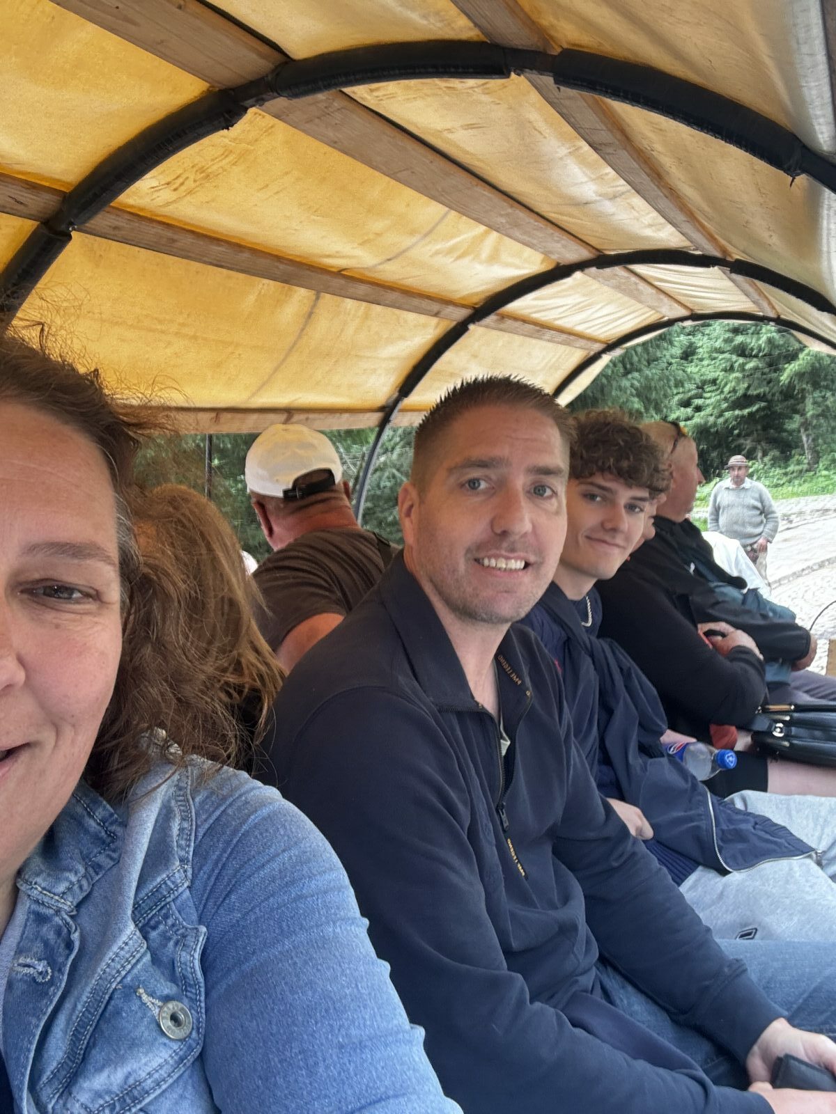 Ons plan was om de laatste 9 kilometer terug met een paardentrailer te doen. Maar toen we bij het meer kwamen, zagen we geen paarden. Even slikken. Tot we na 1,2 km gelukkig toch een halte vonden. Voor 70 zloty per persoon stapten we in. Wat een opluchting – want na die lange tocht hadden we echt geen energie meer om nog uren terug te lopen.